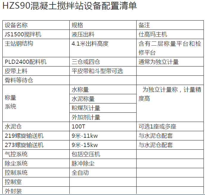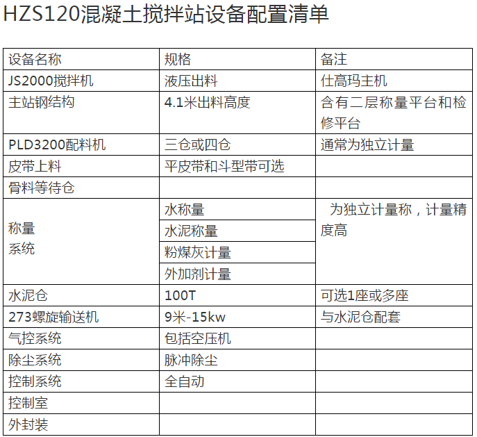 混凝土攪拌站的主要配置清單與價格的重要關系