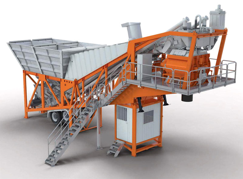 1.整套設備結構緊湊,在一個拖掛單元上集中了混凝土生產的上料、稱量、攪拌等工序;